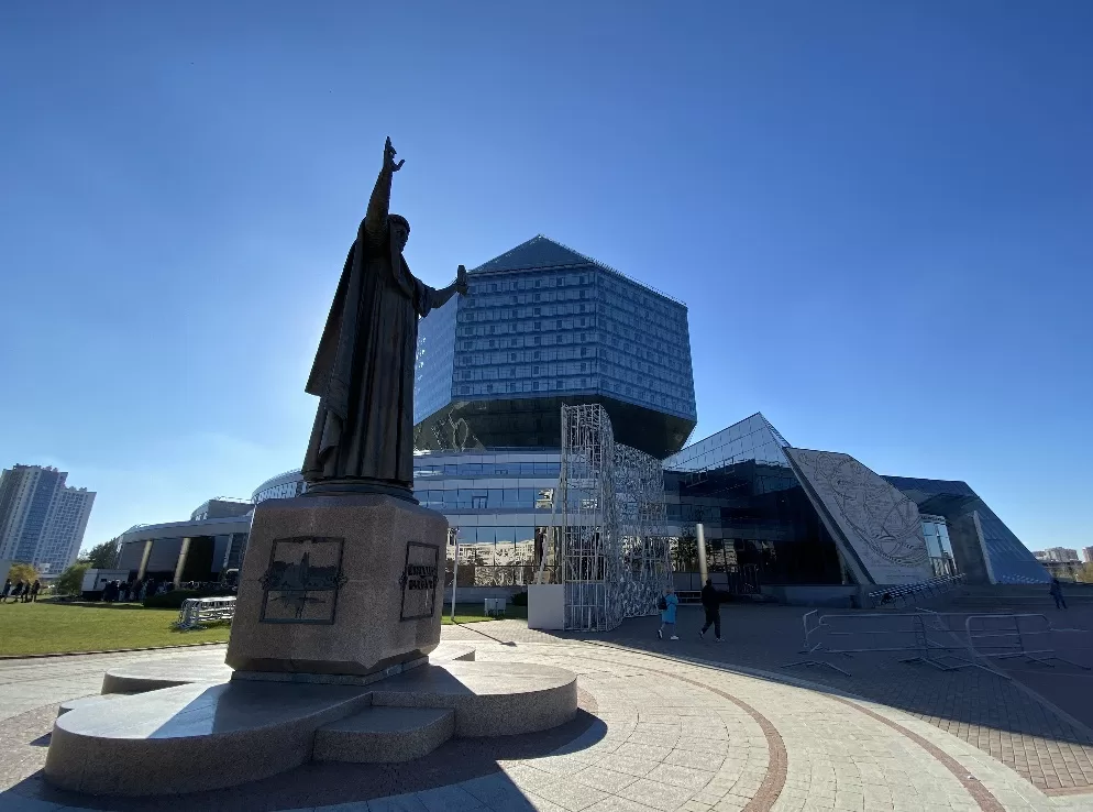 Note: The Belarus National Library can be reached by taking the metro to Uschod Station on the 1st line.